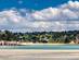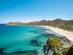 Walk about 15 minutes from the carpark and you soon reach a little pontoon bridge that stretches over a lagoon. Then you might pass a few curious cows before arriving at this 700m (0.4 miles) stretch of soft sands, with the dramatic backdrop of forested hills behind you.
