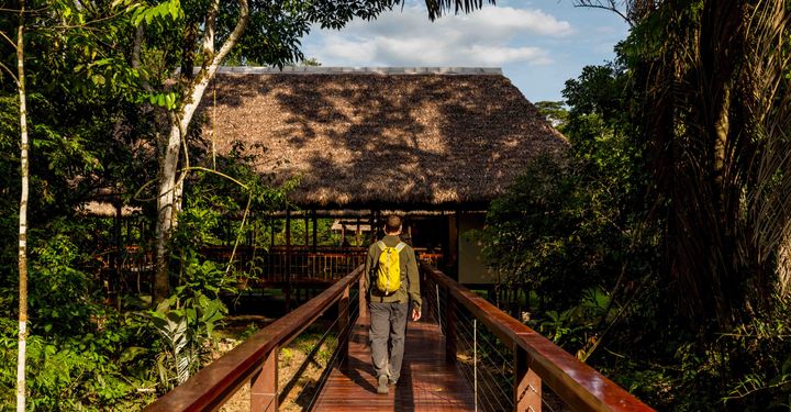 Rooms are open sided but luxurious (get lucky and you’ll find a standalone bathtub on your decking). They’re all connected to the lush public areas via a network of raised boardwalks that weave through the rainforest. Location-wise, it’s hard to beat – some of South America’s biggest clay licks are just a short boat ride away.