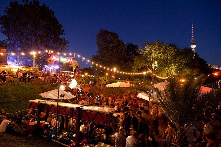 Drinking on the street is permitted in Berlin, so impromptu parties erupt everywhere. On the bank of the Spree opposite the columned National Gallery you’ll often find street sellers touting bottles of beer for €2 and buskers providing entertainment.