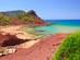 With soft sand a reddish brown that looks more like something out of Utah or outback Australia than the Mediterranean, and clear, teal waters, it’s one of the most striking landscapes on the island.