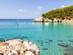It’s relatively unspoiled, set against a backdrop of rugged terrain that’s a striking contrast to the island's more sheltered coves, but still easy to access with a car park just 500m away. It’s also a popular surfing spot, although it’s unlikely you’ll catch any big waves in summer.